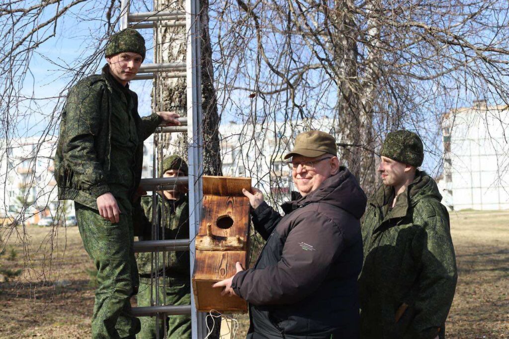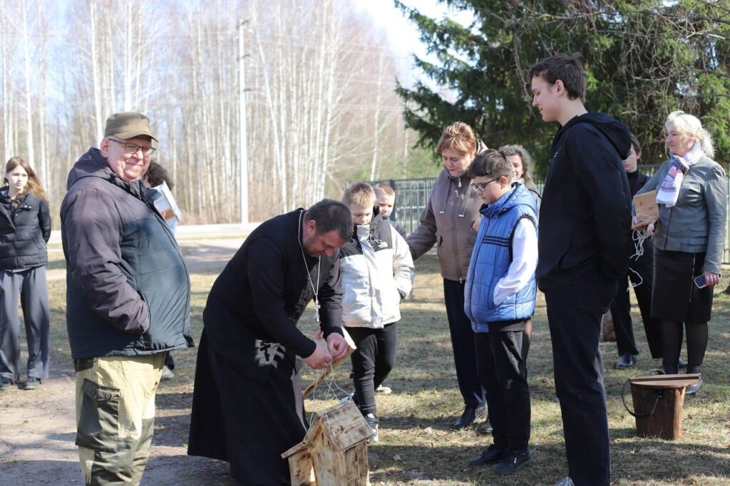 После того, как скворечники были готовы, ребята вместе с военнослужащими Заслоновского гарнизона, начальником районной инспекции природных ресурсов и охраны окружающей среды Вадимом Варганом, председателем Горского сельисполкома Евгением Яско и настоятелем храма преподобного Иосифа Волоцкого иереем Сергием Шишковым развесили скворечники и синички. Часть из них размещена возле школы, остальные — возле храма.