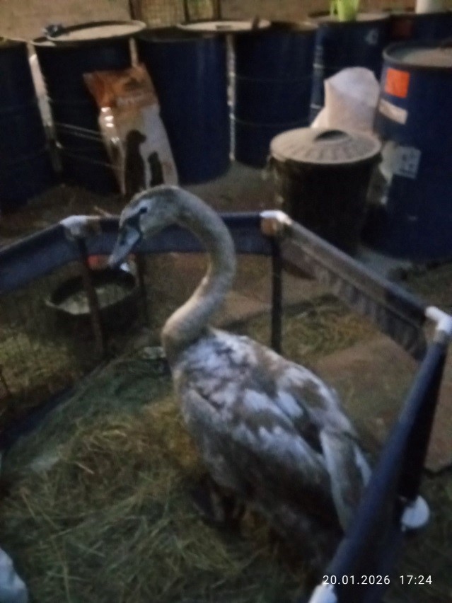 В Поставскую районную инспекцию природных ресурсов и охраны окружающей среды поступило сообщение от неравнодушных граждан, что на оз. Белое, вблизи СТК «Озерки», обнаружен раненый лебедь. Лебедю оказали своевременную и квалифицированную помощь. Так как данную птицу выпустить на волю не представляется возможным в силу полученных травм, районной комиссией по оказанию помощи диким животным было принято решение о передаче лебедя в центр помощи диким животным «Сирин», с которым Поставская районная инспекция не однократно сотрудничала. Так при помощи волонтеров 21 января 2026 года птица была доставлена в новый дом.